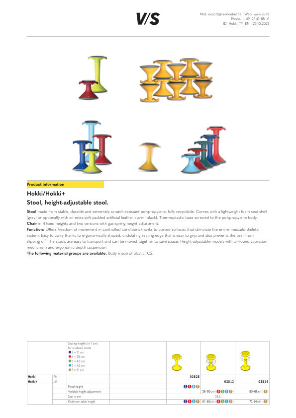 Hokki/Hokki+ Stool, height-adjustable stool.